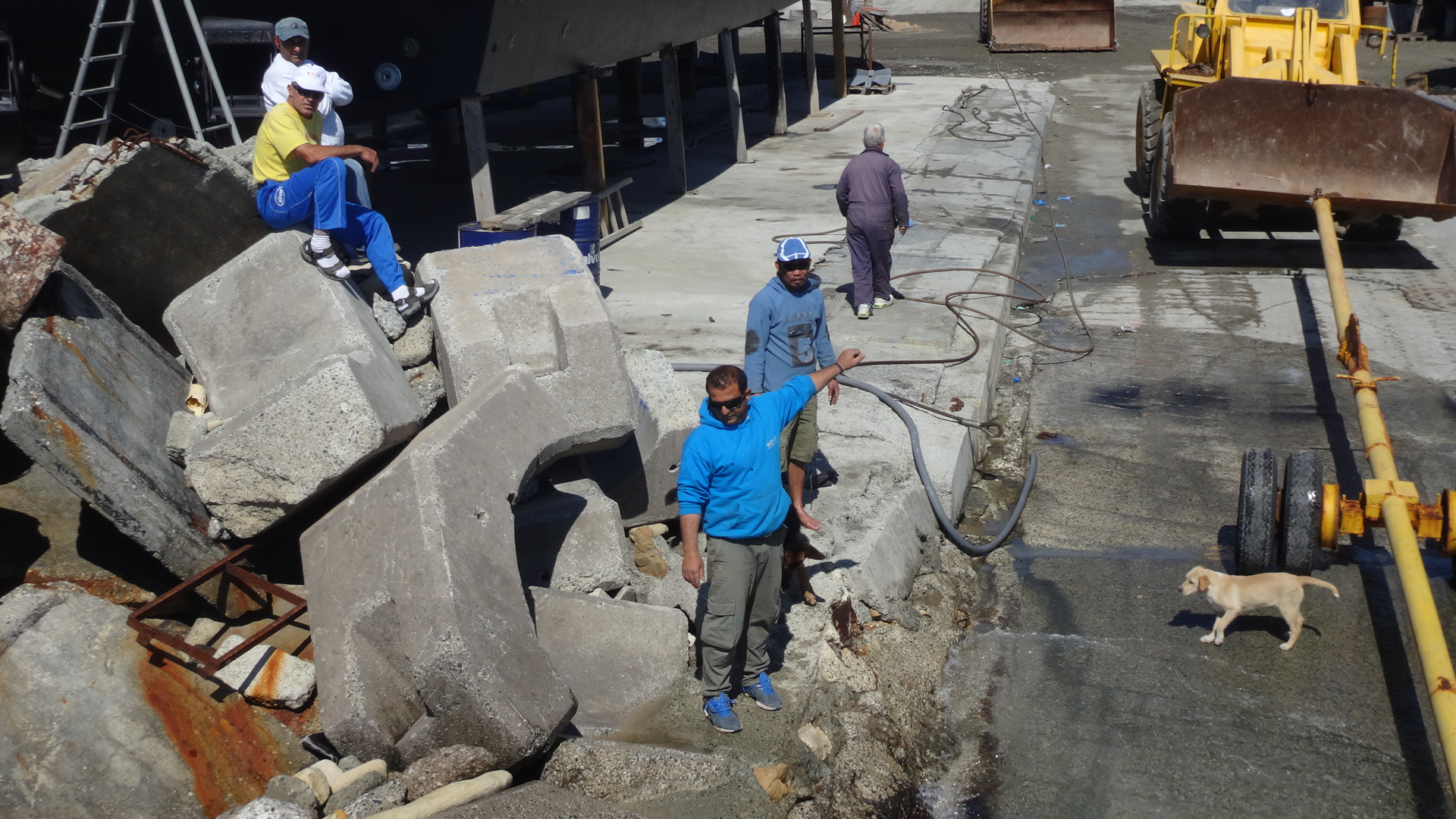 Wie vereinbart erledigt Moses noch die letzten Arbeiten an der Ruderstands-Anzeige. Am Nachmittag kommen die Mechaniker, um den Windrichtungsgeber wieder in Ordnung  zu bringen,  was doch etwas Zeit in Anspruch nahm. Nach Beendigung dieser Arbeit, macht sich Kurt an die Vorbereitung für unsere morgige Überfahrt. Dabei stellt er fest, dass der Tiefenmesser, der Windmesser und elektronische Kompass nicht funktionieren. Moses, unser Supermann organisiert seinen Kapitän, der alles regelt. Capt. Matthew, über ihn schreiben wir später, hat in kurzer Zeit herausgefunden, woran es liegen könnte, und unseren Chiefingenieur orientiert. Ach ja, das „Winterwasser“ haben wir dem Meer übergeben, das heisst unseren Wassertank total geleert und sind im Moment, 22.40 Uhr immer noch dabei, wieder 3200 Liter Wasser aufzufüllen. Matthew hat bereits zum x. mal mit der Werft telefoniert, damit der alte Akkulader vom Schiff geholt wird. Der hat ein Gewicht, dass es 3 Mann braucht, um ihn zu transportieren.
