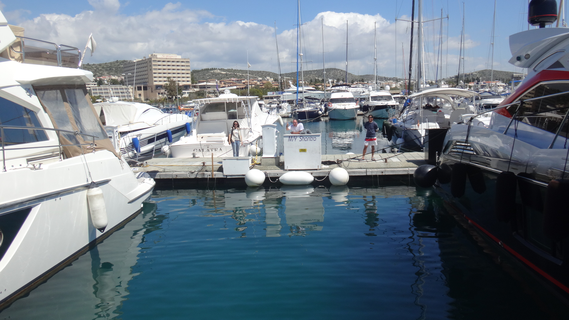 Mit dem ersten, voll gefüllten Einkaufswagen gehts zur Kasse, dann wird unser Taxifahrer Georges angerufen, der verspricht in 5 Minuten vor Ort zu sein. Kurt schnappt sich einen 2. Einkaufswagen und geht zum Flüssigeinkauf. 10 Sixpack 1,5 Liter Mineralwasser und 3 zypriotische Weine sind im Wagen. Zur Kasse und raus und schon ist Georges da. Er hilft uns beim Beladen seines Taxis. Dabei erzählt er uns, dass früher an diesem Ort ein kleines Restaurant gestanden habe, dessen Besitzer habe eine Million Pfund angeboten bekommen wenn er den Platz hier räume. Mit dem vom Himmel gefallenen Geld habe er dann ein anderes Restaurant erstanden. Nachdem wir die ca. 12 Kilometer zur Marina zurückgefahren sind, hilft er uns beim Ausladen und verlangt gerade mal 11,5 Euro. Matthew sieht uns kommen und organisiert sofort Moses und beide helfen uns, den Einkauf auf`s Schiff zu bringen. Kurt geht danach nochmals zum Einkauf, denn sein Telefonguthaben beträgt nur noch 0.7 Euro. Zudem benötigen wir als Bakschisch noch etwas Bier für den Suez Kanal. Diesen Einkauf tätigt er aber im nahe gelegenen kleinen Geschäft.