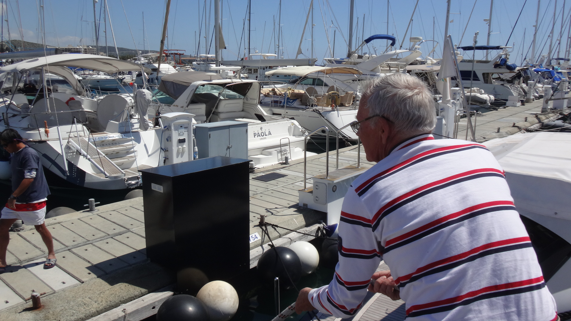 Im Innenbereich muss natürlich wieder alles gereinigt werden, das heisst zeitig beginnen. Doch zuerst geht`s in den nächsten Laden um Frühstück einzukaufen. Dann, noch vor dem Frühstück, kommt bereits die Polizei und fordert uns auf, uns beim dem Büro der Marina zu melden. (Hätten wir ja eh gemacht.) Alles wieder von vorn. Wir bekommen, das heisst wir müssen kaufen, den Zugangscode fürs Internet. Für eine Woche bezahlen wir € 50.00. Dies gilt nur für 4 Geräte. Lap Top Verena, Telefon Verena und Tablet Verena sind schon Drei. Kurt möchte doch auch etwas und dann ist noch der Lap Top für unsere Homepage. Wir haben uns natürlich gütlich geeinigt, aber als wir das 4. Gerät, den Homepage Lap Top ins Netz einloggen wollen, geht der nicht.
