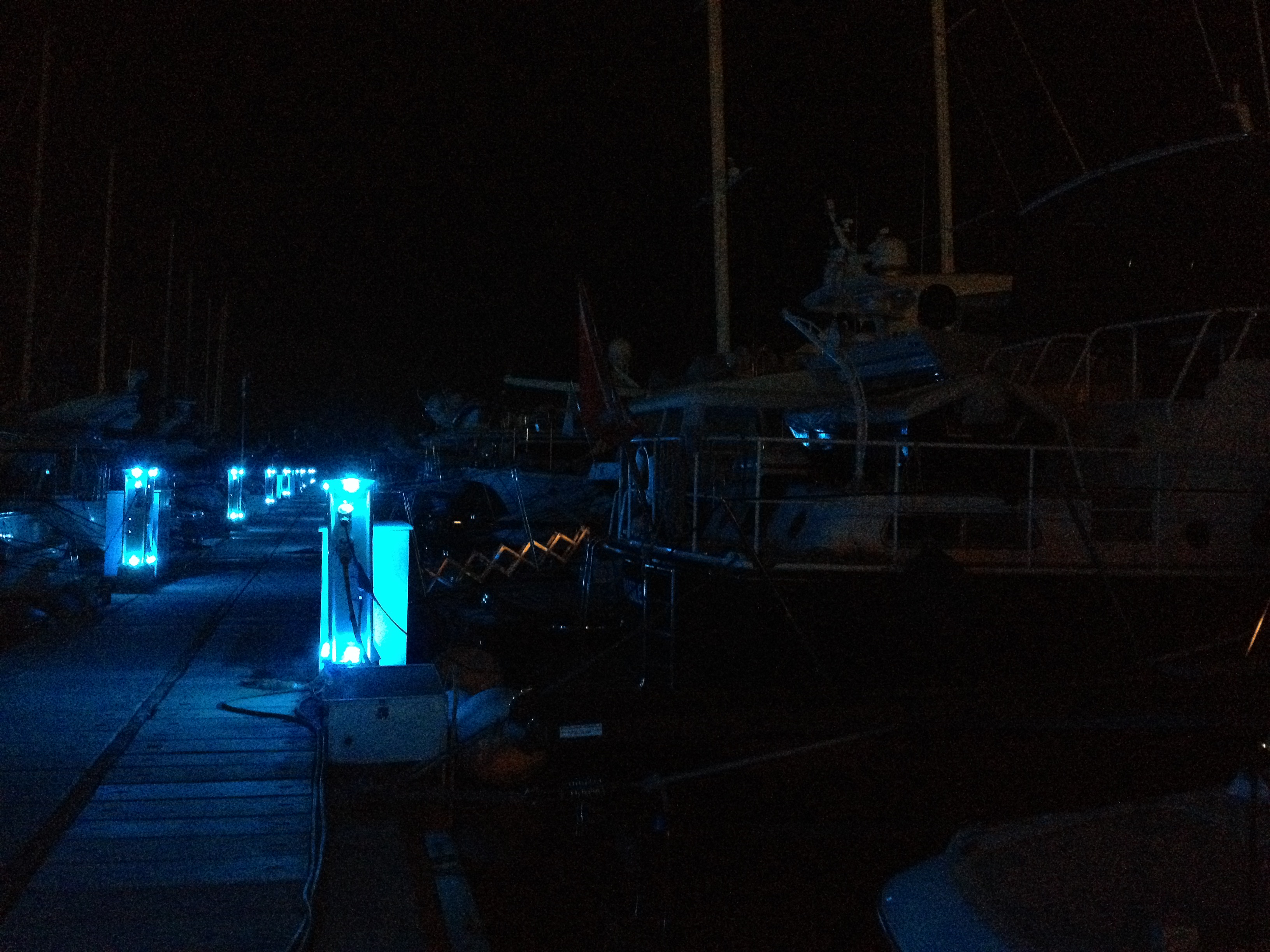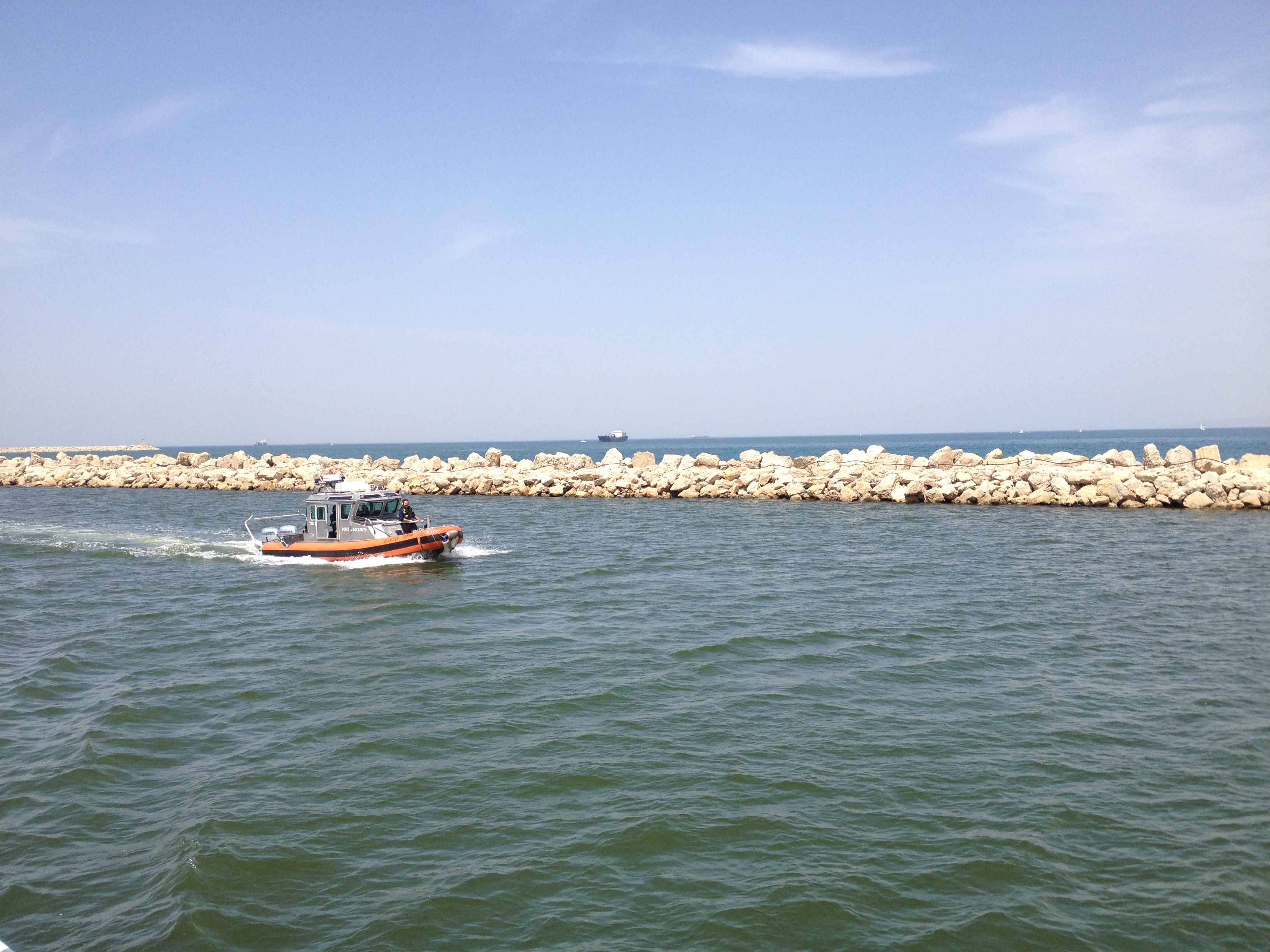 Wir fahren weiter und bei der Hafeneinfahrt werden wir wieder über Funk aufgerufen und unsere Daten werden verlangt. Ein Boot der Sicherheitsbehörden empfängt uns und dirigiert uns, aber immer hinter uns, wo wir hinfahren sollen.