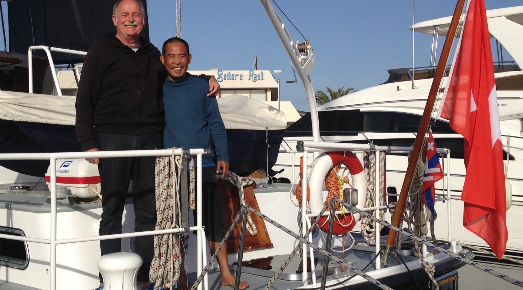 Um 19 Uhr bekommen wir einen Anruf, dass die Werft trotz Feiertag arbeitet und unser Schiff am 1.4.2015, (ein würdiger Tag) um 10 Uhr eingewassert wird. Die notwendigen Schritte haben wir unverzüglich eingeleitet, das heisst, wir haben mit dem Hotel vereinbart, dass wir die Koffer dort lassen können, da wir sie wiederum per Seil aufs Schiff hätten hieven müssen.